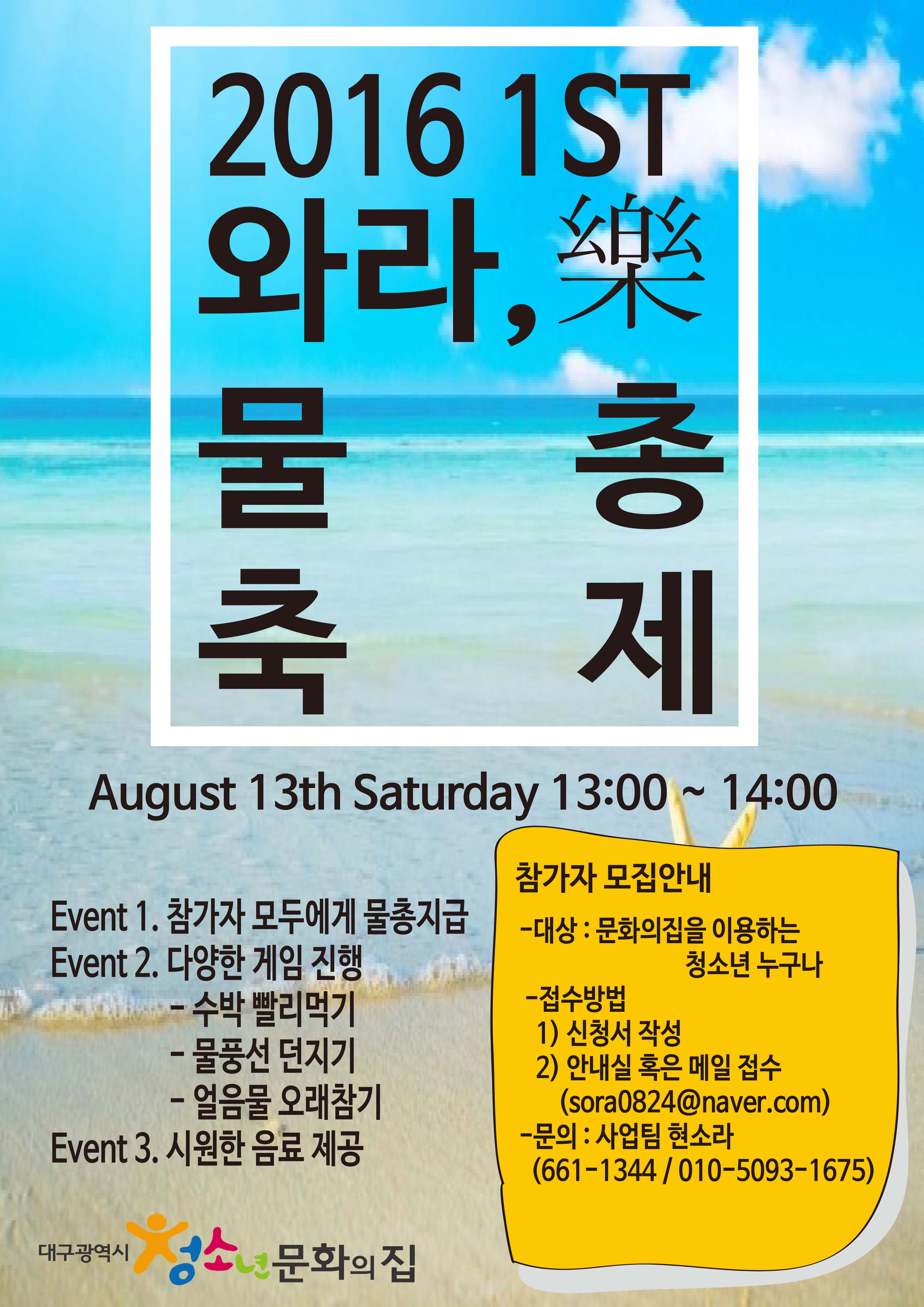 여름방학 기획 프로그램 와라, 樂 - 물총축제 참가자 모집안내