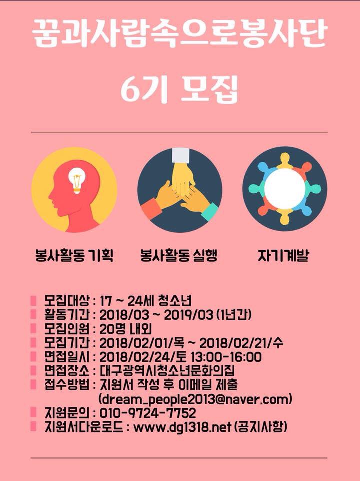 ⭐문의 : "꿈과 사람속으로 봉사단" 페이스북 (