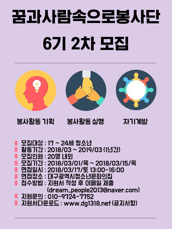 꿈과사람속으로 봉사단 6기 2차 모집 안내