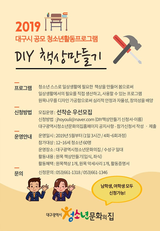 대구시 공모 청소년활동프로그램 DIY 책상만들기