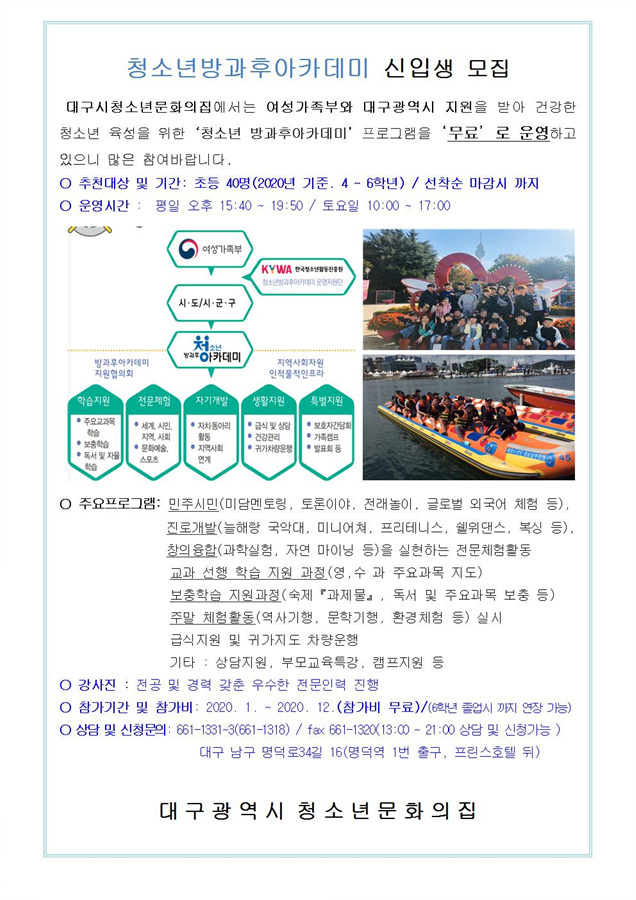 우)42409 대구광역시 남구 명덕로34길 16 전화번호 : 053-661-1318~9 팩스번호 : 053-661-1320