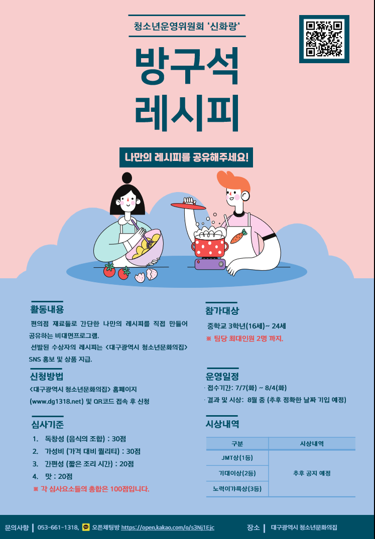 그러니깐 우리 청소년문화의집의 프로젝트 <방구석 레시피> 를 통해 나만의 레시피를 공유하고 상품 받아가자!!!!