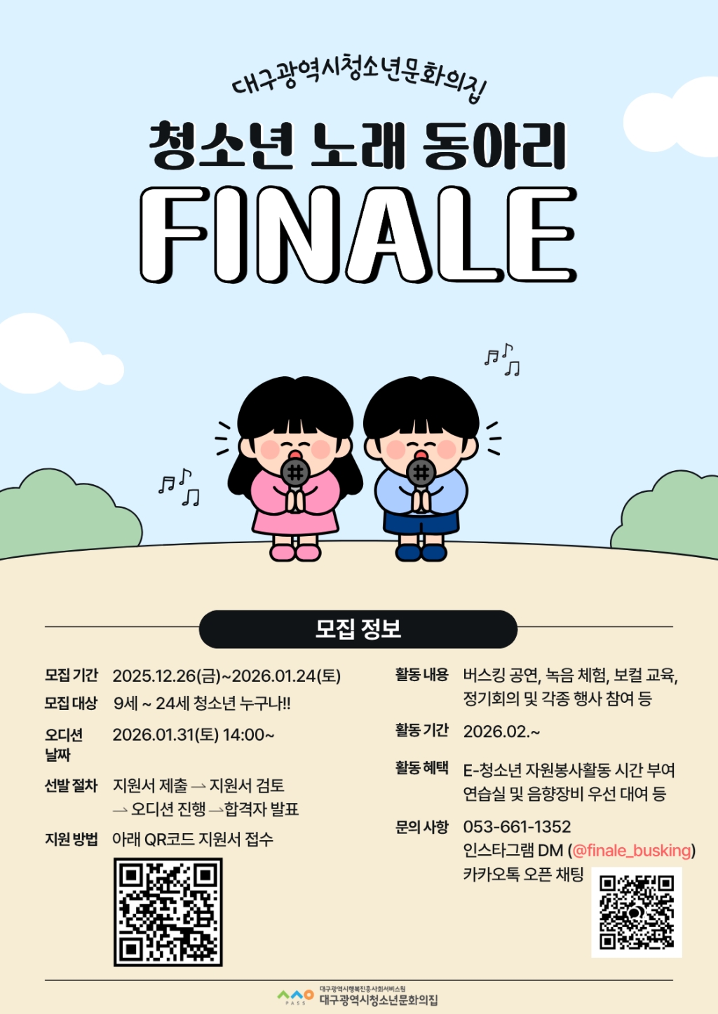 [모집] 2026 대구광역시청소년문화의집 노래동아리 피날레 모집