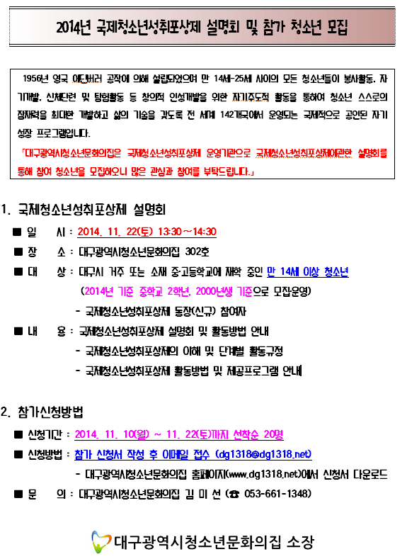 Copyright 2014 DAEGUYOUTH. All Right Reserved.
