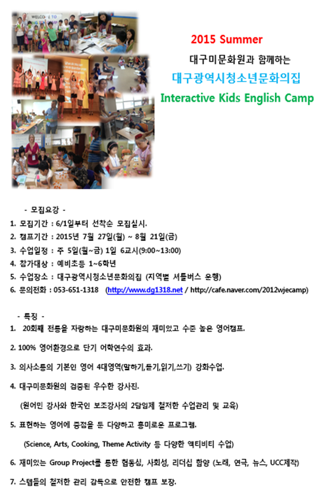 2015 Summer 영어캠프 모집 안내