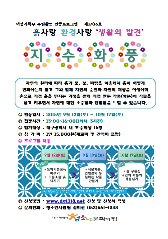 [활동프로그램 모집]수련활동인증1706호 - 생활의 발견 지수화풍