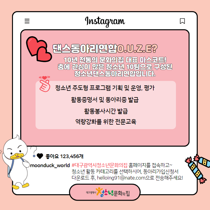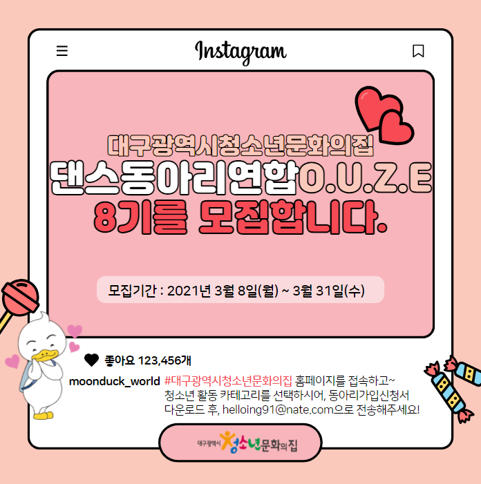 대구광역시청소년문화의집 댄스동아리연합 O.U.Z.E 8기를 모집합니다.