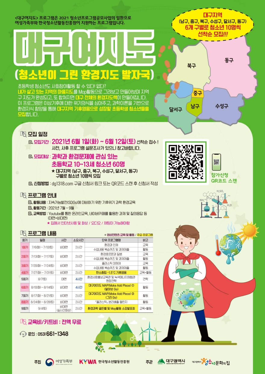 이 프로그램은 이상기후에 대한 위기의식을 심어주고, 과학이론을 기반으로 환경지식 함양을 통해 대구지역 기후영웅으로 성장할 초등학생 청소년들을 모집합니다.