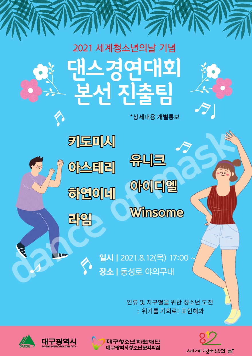 2021 세계청소년의날 기념 전국청소년댄스경연대회 본선진출팀 안내