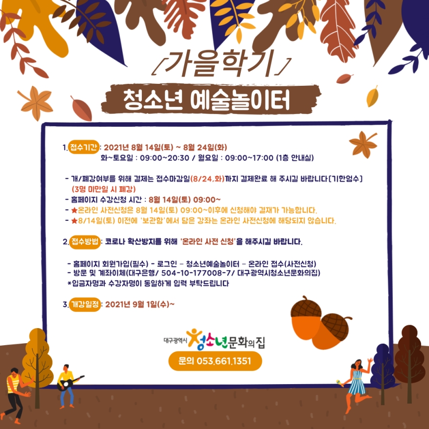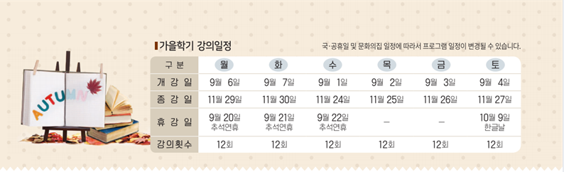 - 홈페이지 수강신청 시간 : 8월 14일(토) 09:00~