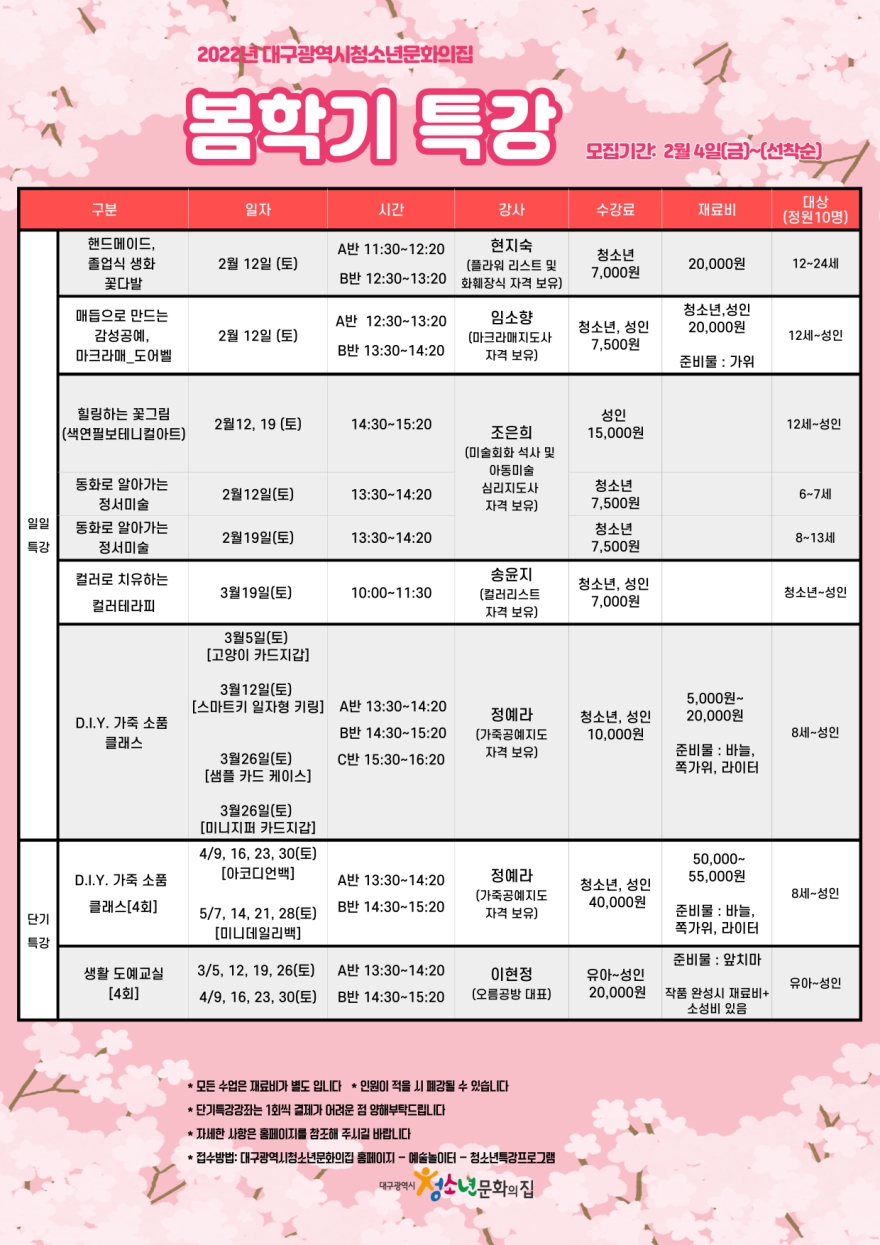 [모집]청소년예술놀이터 봄학기 특강 안내