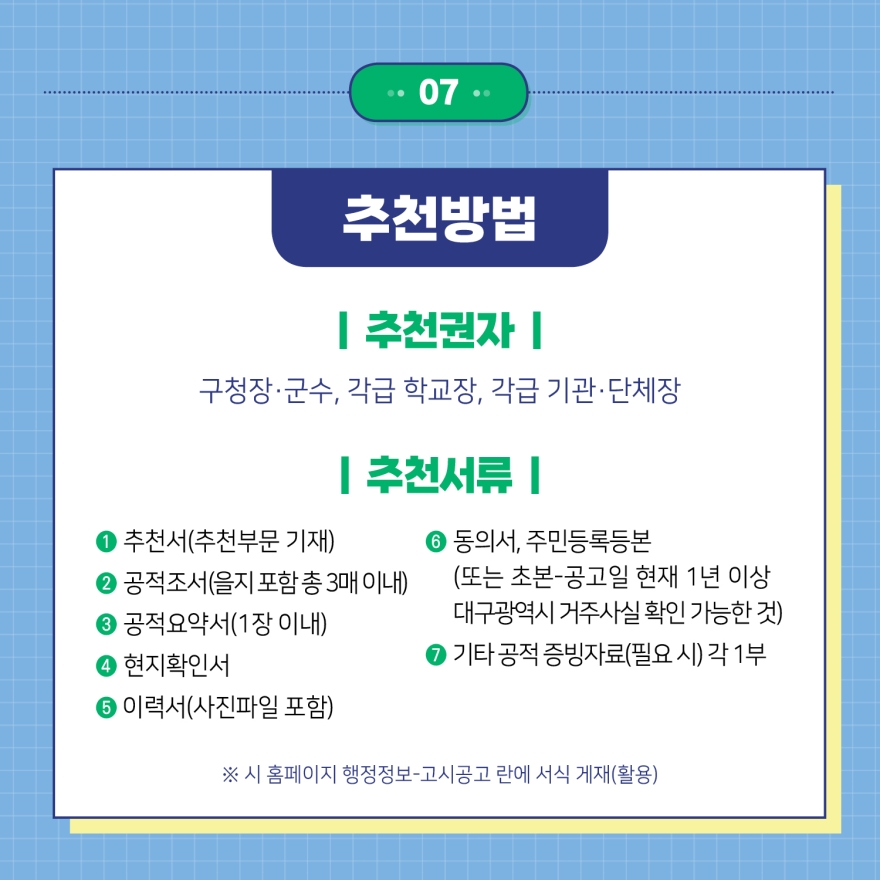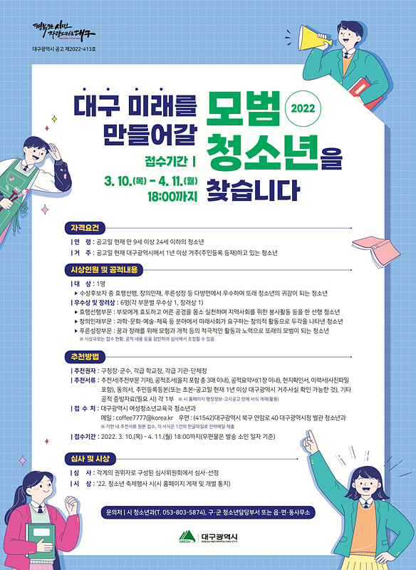 제 34회 대구광역시 모범 청소년 후보자 모집 안내