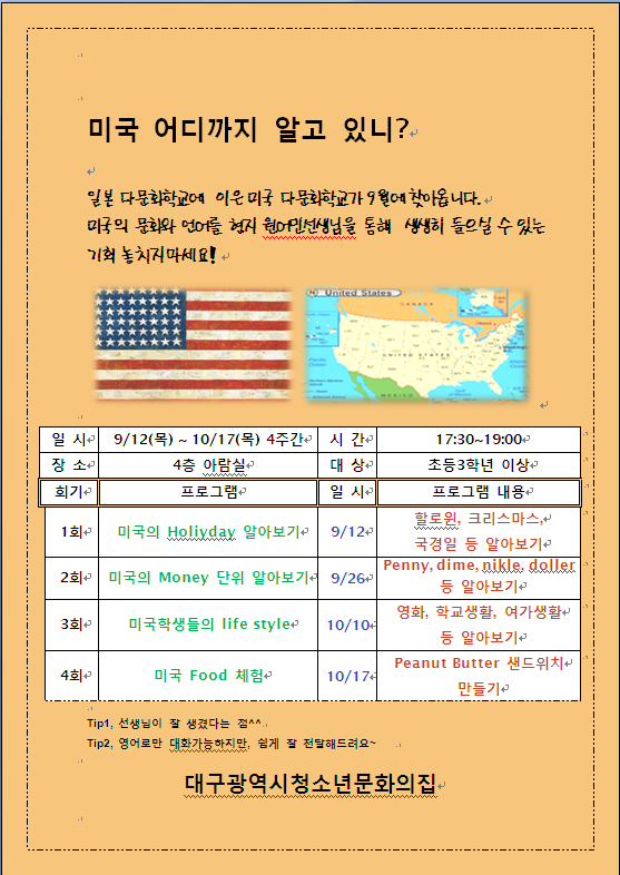 미국 어디까지 알고 있니? 미주 다문화학교 체험 회원 대 모집 안내
