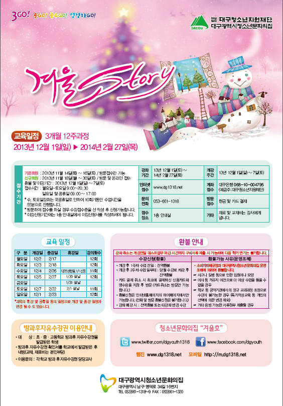 ▶신규회원 : 2013년 11월 18일(월) ~ 30일(토) / 방문 및 온라인 신청 가능